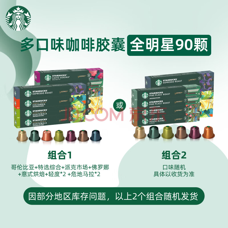 商品相册:星巴克(Starbucks)胶囊咖啡多口味混享黑咖啡性价9盒90颗共495g适配Nespresso胶囊机第1张/共8