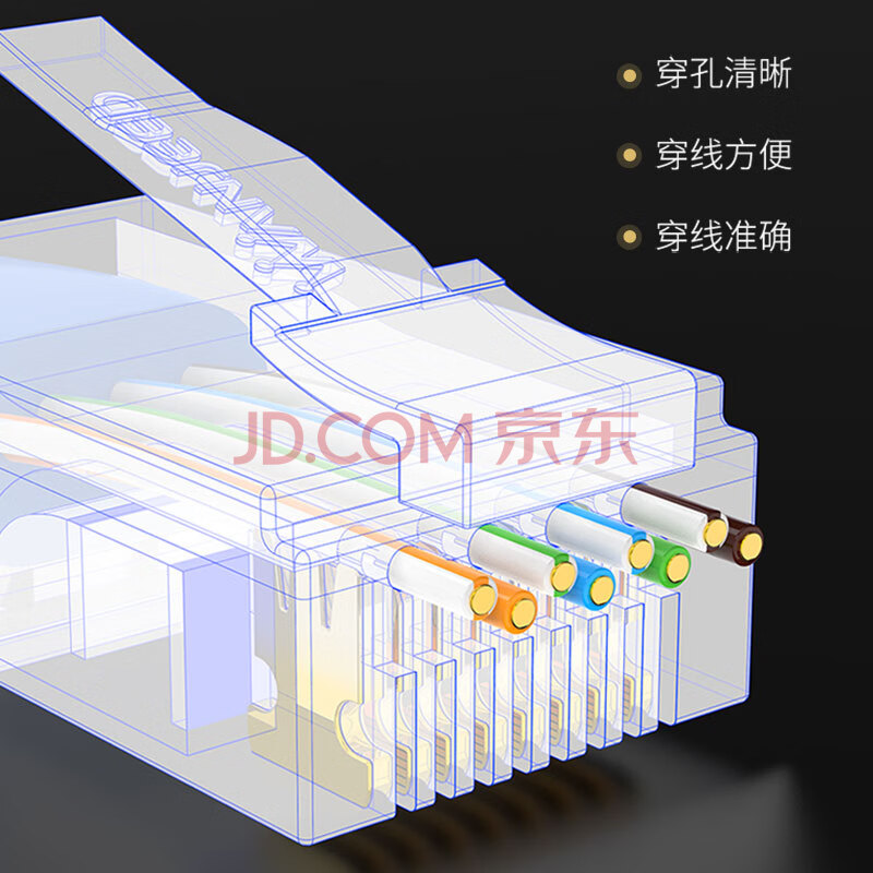 商品相册:万级六类水晶头 Cat6类通孔网线接头100个/盒 RJ45穿孔式网络连接器8P8C千兆水晶头WJ-15232第