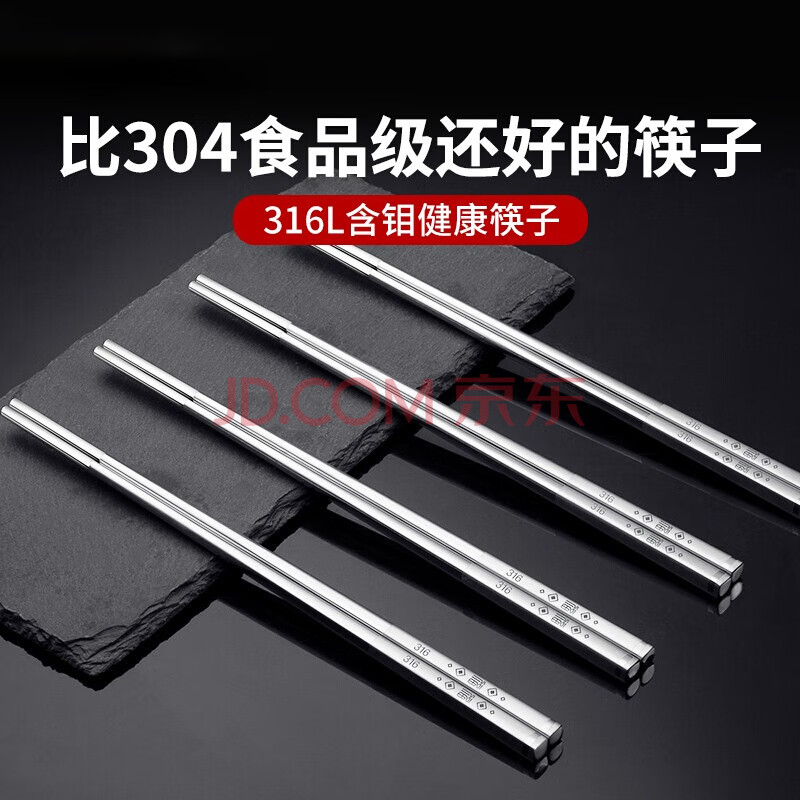 商品相册:双枪316L不锈钢筷子防滑不发霉家用酒店公筷餐具 福字方筷10双第