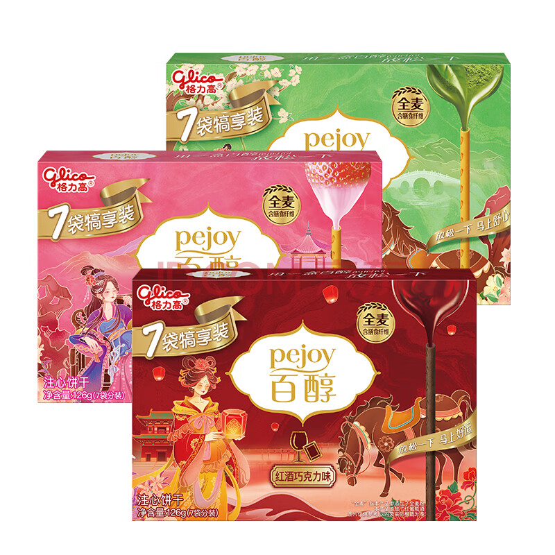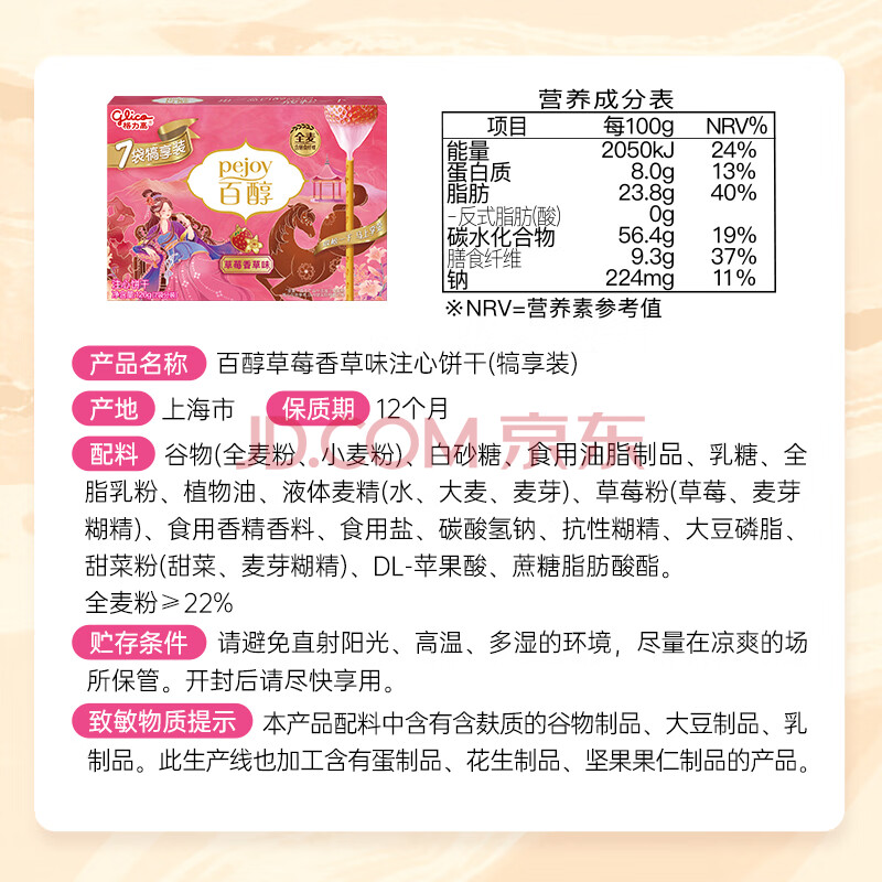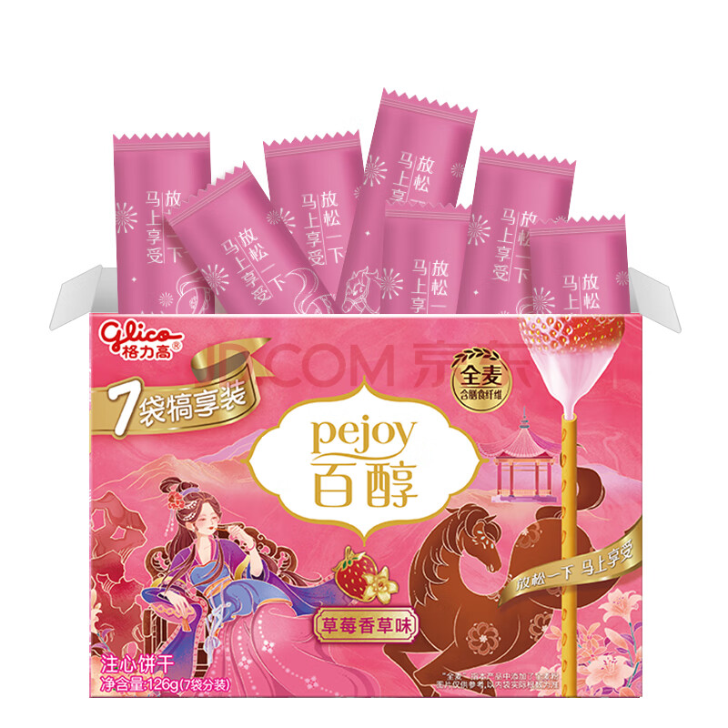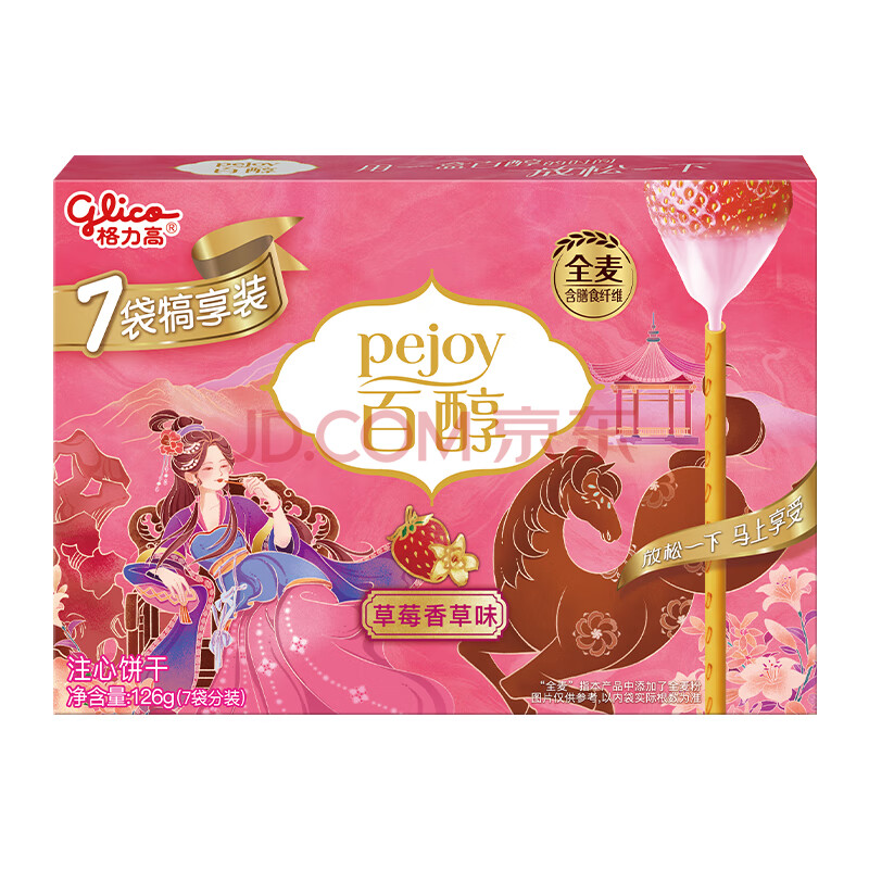 商品相册:格力高(glico)百醇家庭犒赏装草莓香草味126g(7小袋)饼干休闲零食下午茶第