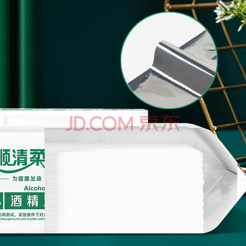 商品相册:顺清柔湿巾80片*1包 75%酒精抽取式一次性清洁湿纸巾无香单包装第