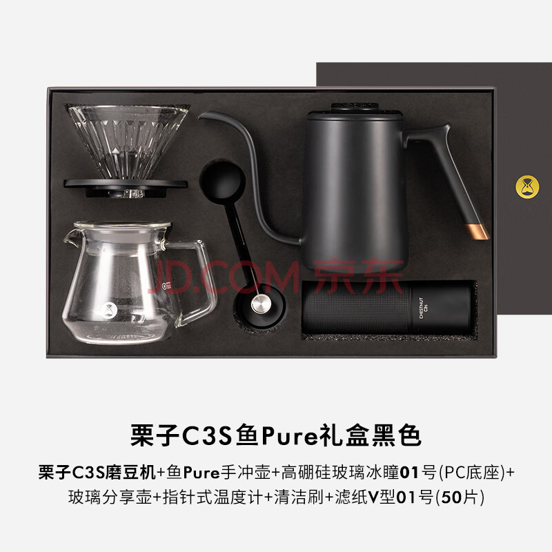 商品相册:泰摩栗子C鱼Pure手冲咖啡壶套装礼盒 手冲壶磨豆机冰瞳滤杯分享壶送礼第1张/共6