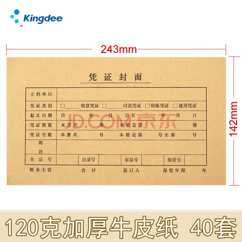 商品相册:金蝶(kingdee)凭证封面发票版封皮会计凭证记帐封面封底包角 40套/包 243*142mm FM121B第