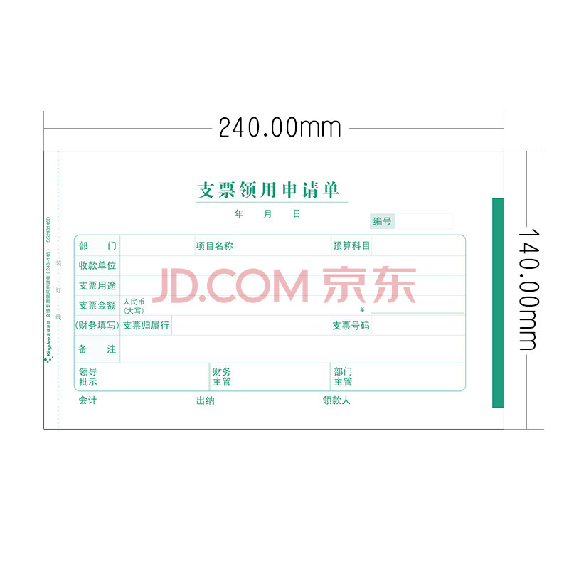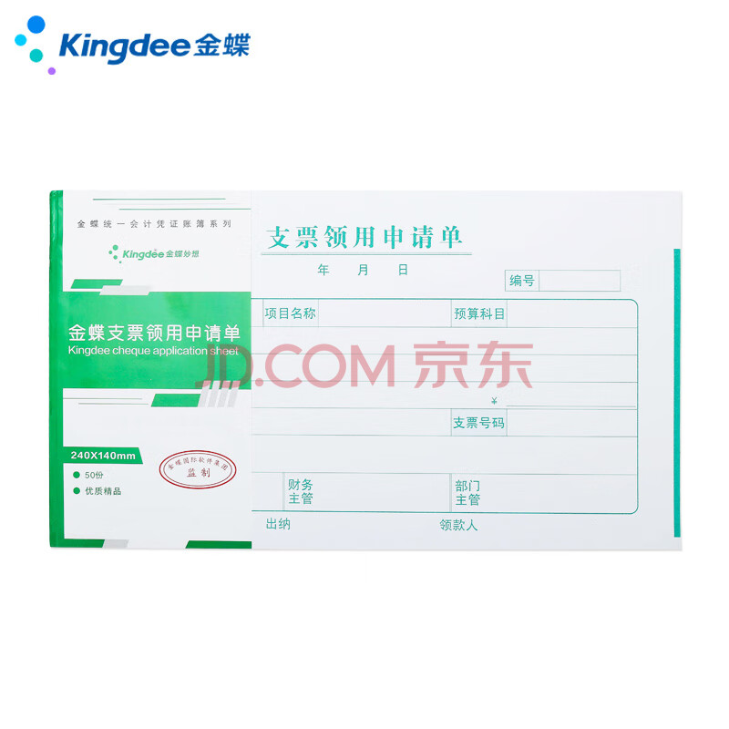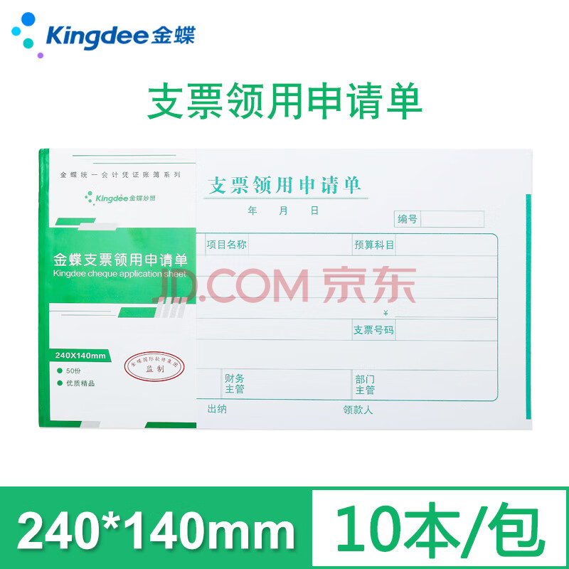 商品相册:金蝶(kingdee)支票领用单财务手写报销单据240*140mm 10本/包 财务会计办公通用单据第