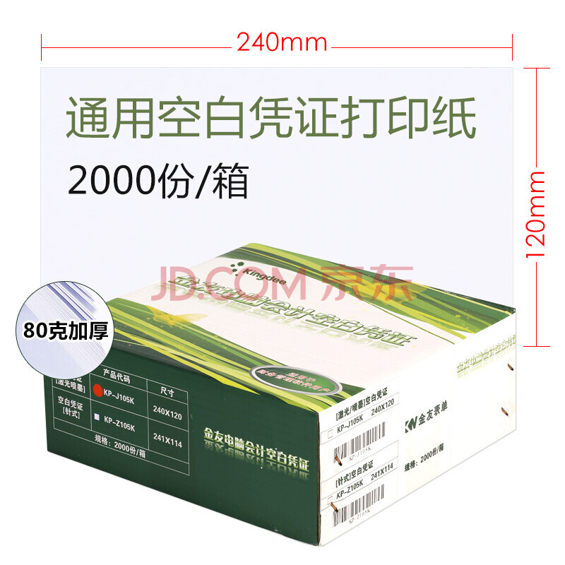 商品相册:金蝶(kingdee)凭证纸80g空白凭证纸 激光记账凭证打印纸240*120mm 2000张KP-J105K 热门商品办公用品打印纸第
