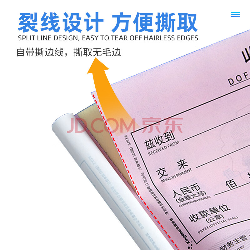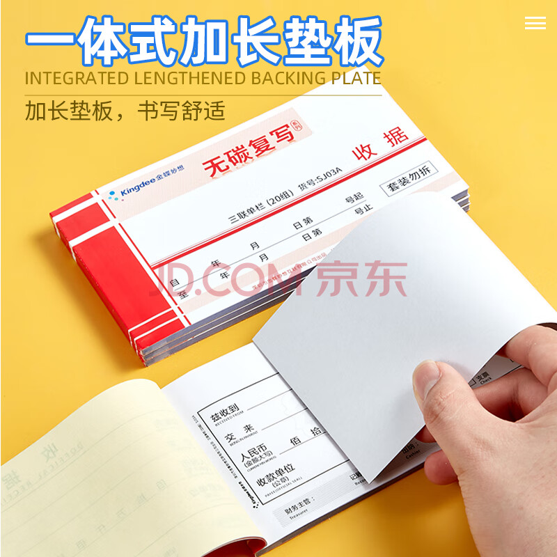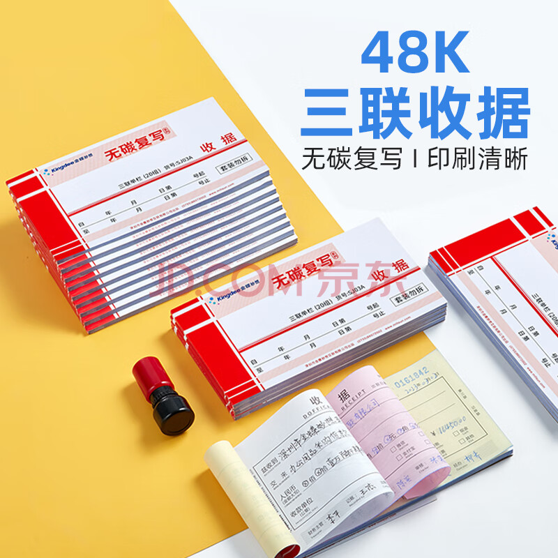 商品相册:金蝶(kingdee)三联单栏收据单 无碳复写收款收据 打印手写收据单样本单 175*95mm 10本/包第