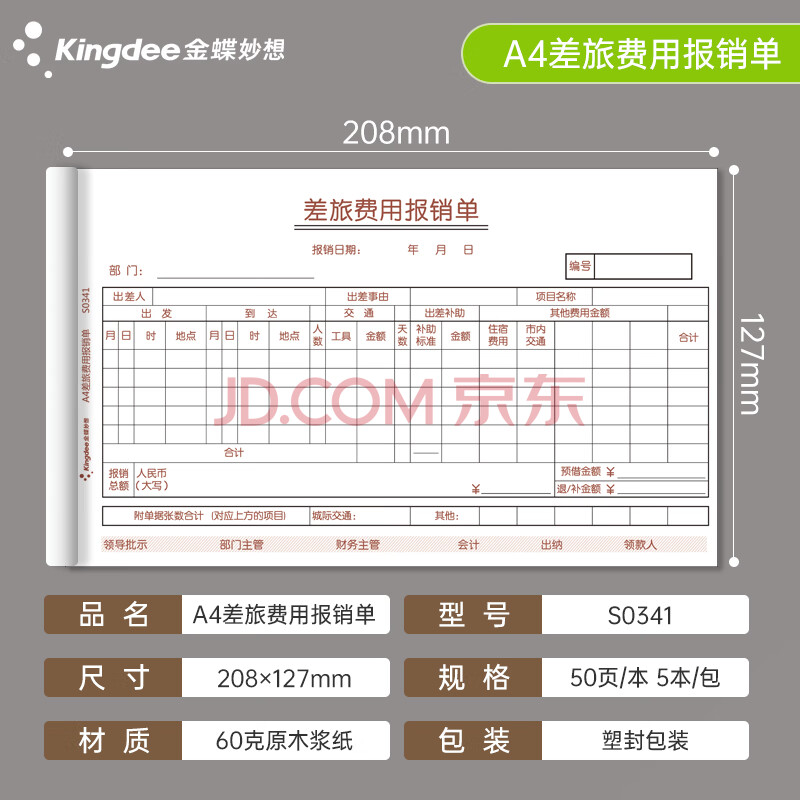 商品相册:金蝶(kingdee)差旅费报销单财务手写报销单据 财会用品单据208*127mm 50张/本 5本/包第1张/共6