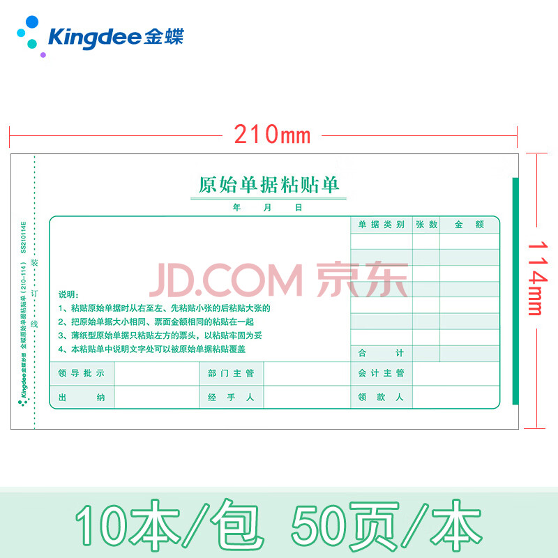商品相册:金蝶(kingdee)支出报销单原始凭证报销单据粘贴单据210*114mm 财务专用通用会计记账凭证纸 SS210114E第