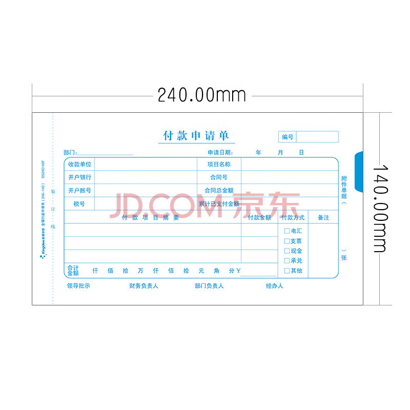 商品相册:金蝶(kingdee)付款申请单财务手写报销单据240*140mm 10本/包 财务会计办公通用单据第