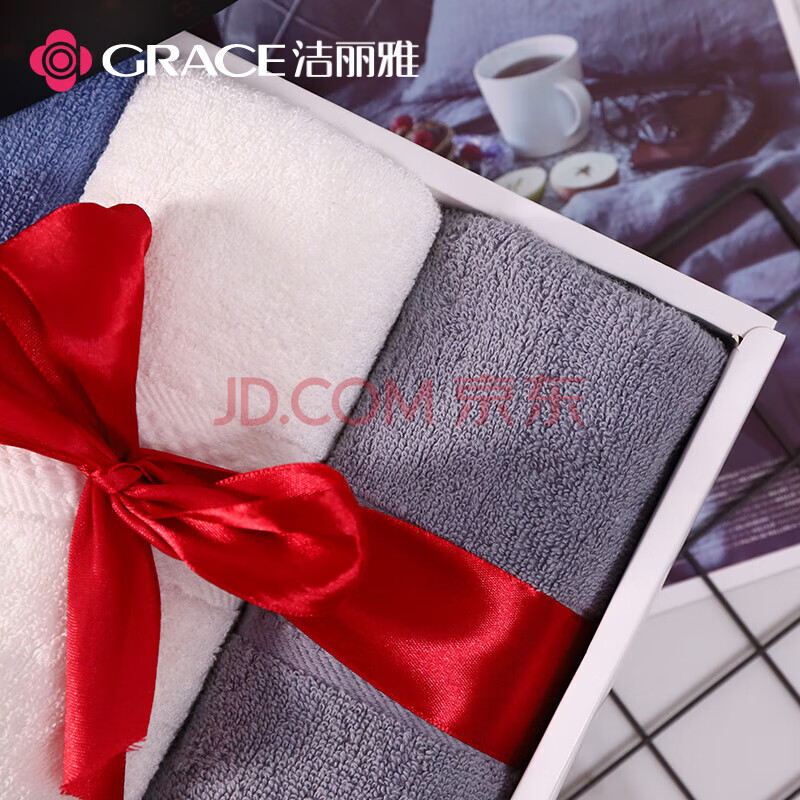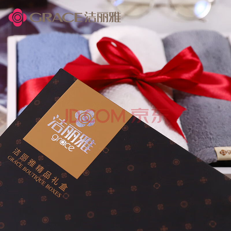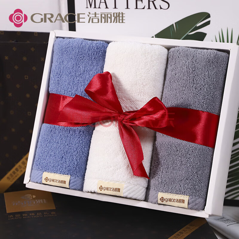 商品相册:洁丽雅(Grace)毛巾礼盒 A类纯棉洗脸毛巾成人家用柔软3条礼盒套装 公司员工福利第