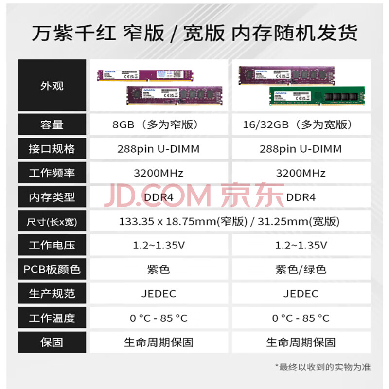 商品相册:威刚(ADATA)8GB DDR4 2666 台式机内存 万紫千红第