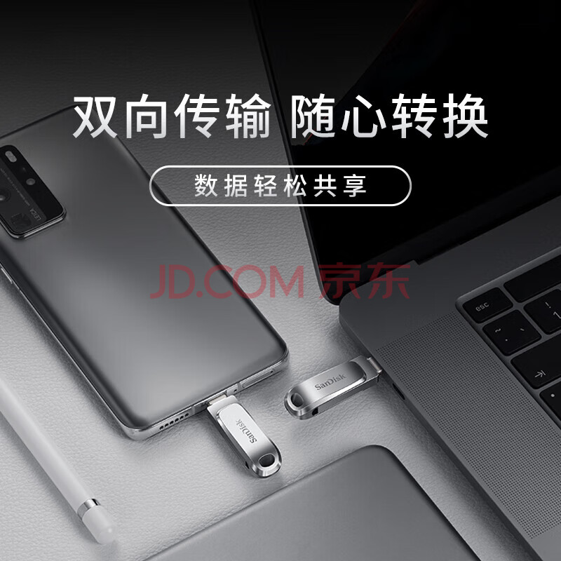 商品相册:闪迪(SanDisk)32GB Type-C USB3.2 手机U盘DDC4 读速高达150MB/s 自动备份 平板电脑两用 金属双接口大容量优盘第