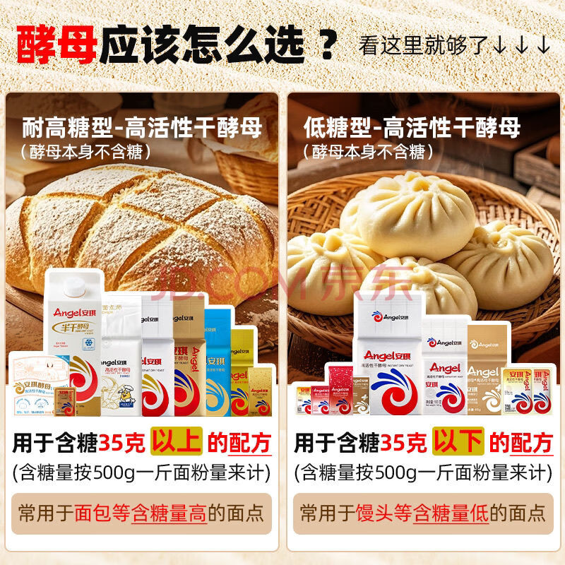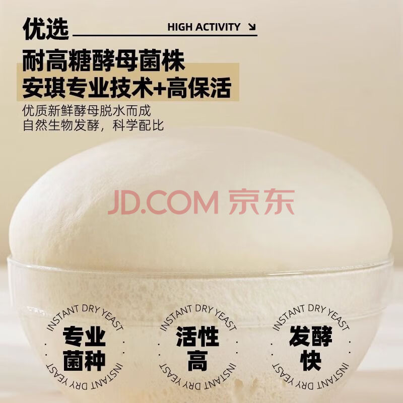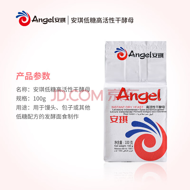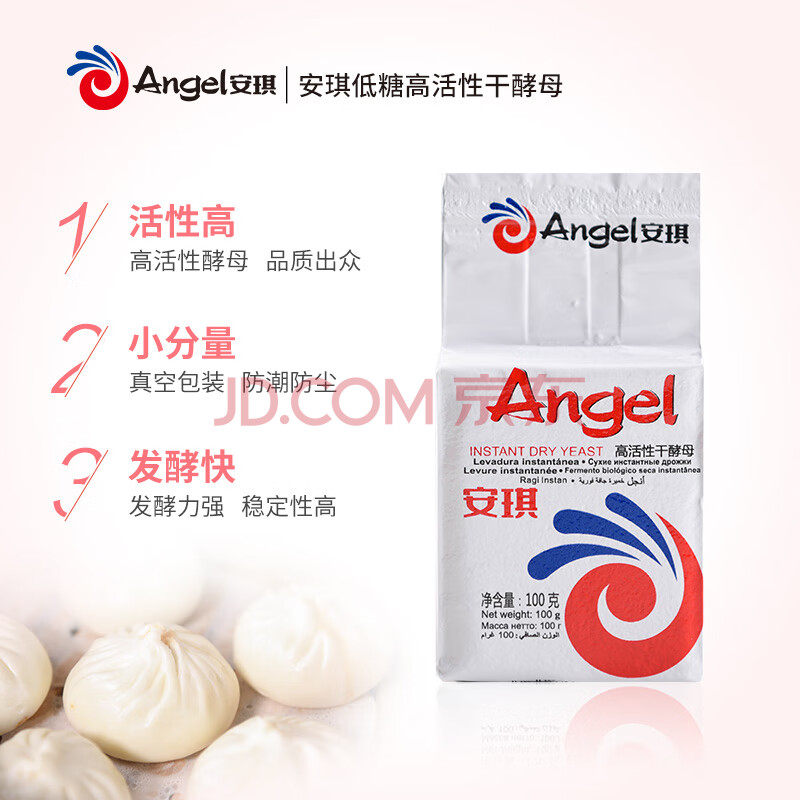 商品相册:安琪低糖型高活性干酵母粉100g 发面家用自制包子馒头发酵粉 烘焙原料第