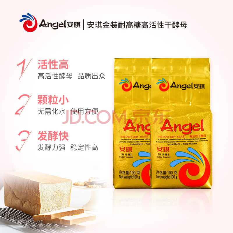 商品相册:安琪高活性干酵母粉100g*2袋 耐高糖型发酵粉家用做吐司面包烘焙原料第