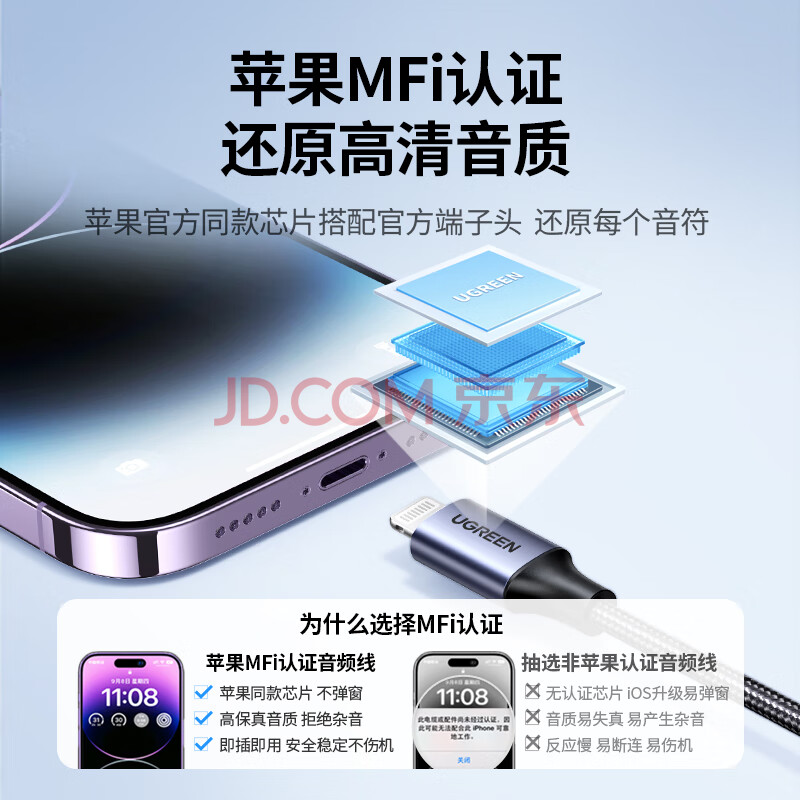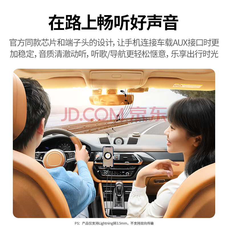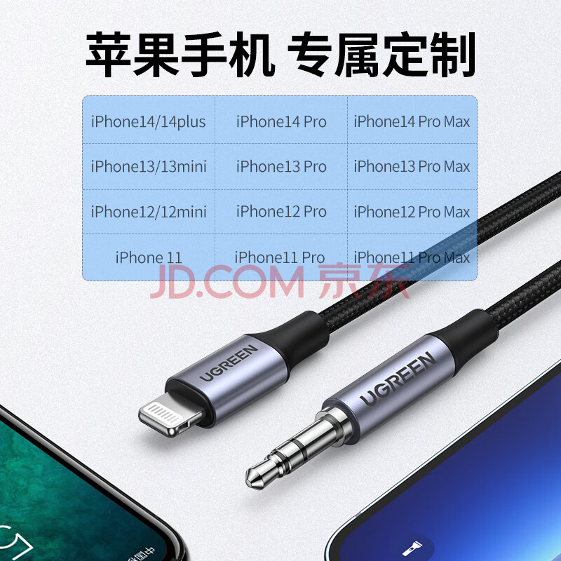 商品相册:绿联 MFi认证苹果AUX车载音频转接线Lightning转3.5mm转换数据线适用于iPhone14/13/12/11Pro/XR第