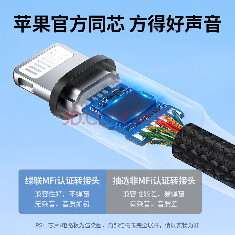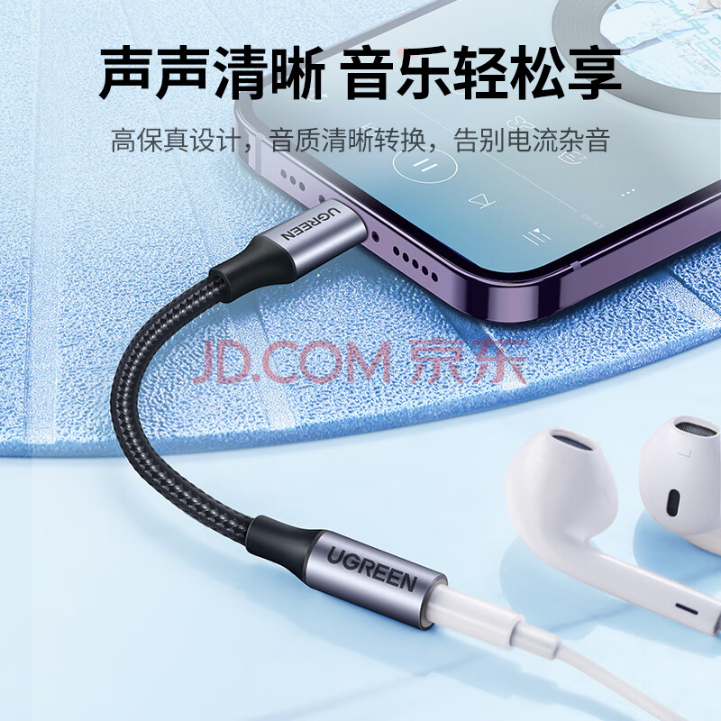 商品相册:绿联耳机转接头MFi认证音频转换器Lightning转3.5转接线手机/平板适用于苹果iPhone14/13/12/iPad第