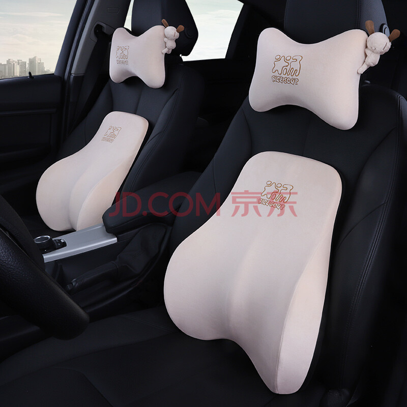 商品相册:爱车屋 ICAROOM 汽车头枕腰靠套装 太空记忆棉车用护颈腰枕垫办公座椅靠背T-001M/630M-X 杏色第