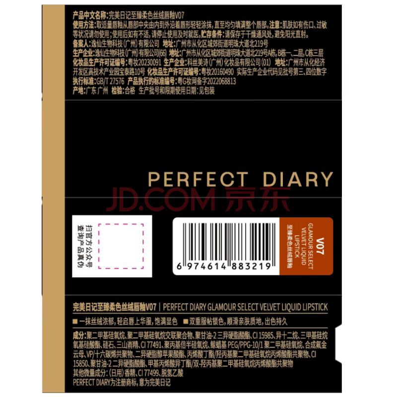 商品相册:完美日记至臻柔色丝绒唇釉V07冰糖柿子色2.5g口红生日礼物送女友第