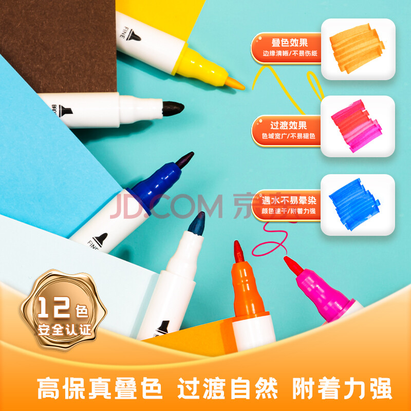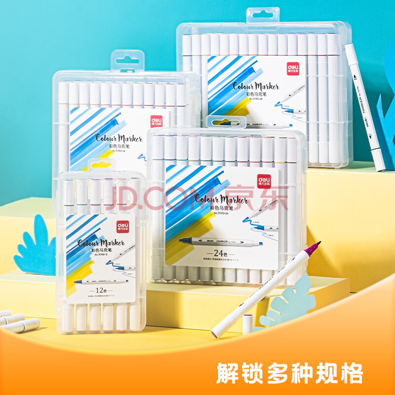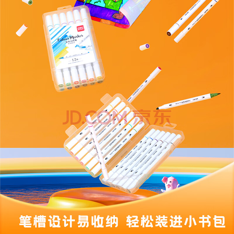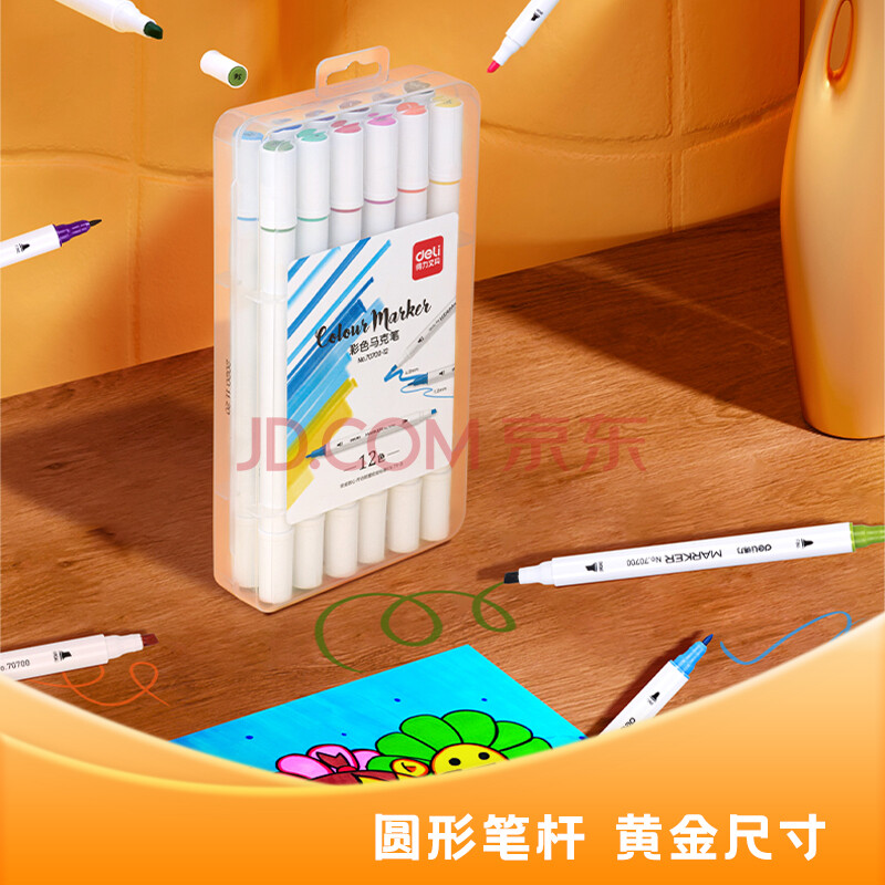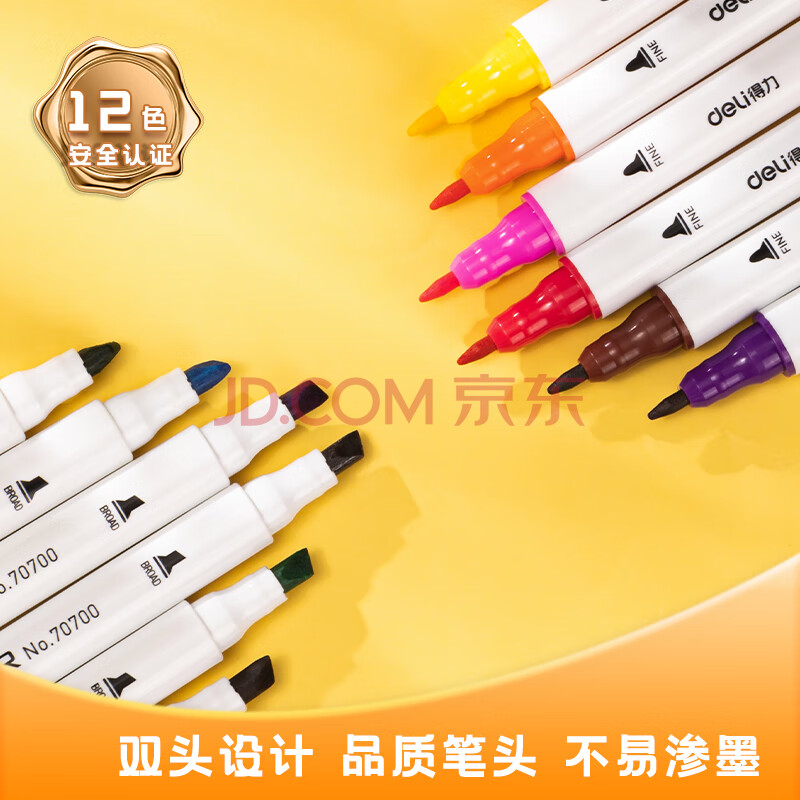 商品相册:得力(deli)12色双头细杆酒精速干马克笔套装元旦树水彩笔双头彩笔漫画笔设计荧光笔70700-12美育第