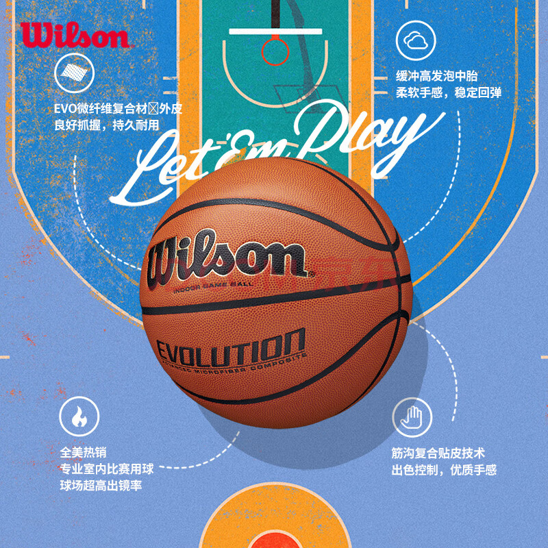 商品相册:Wilson威尔胜Evolution路人王同款用球超纤PU室内专业竞赛7号篮球第1张/共9