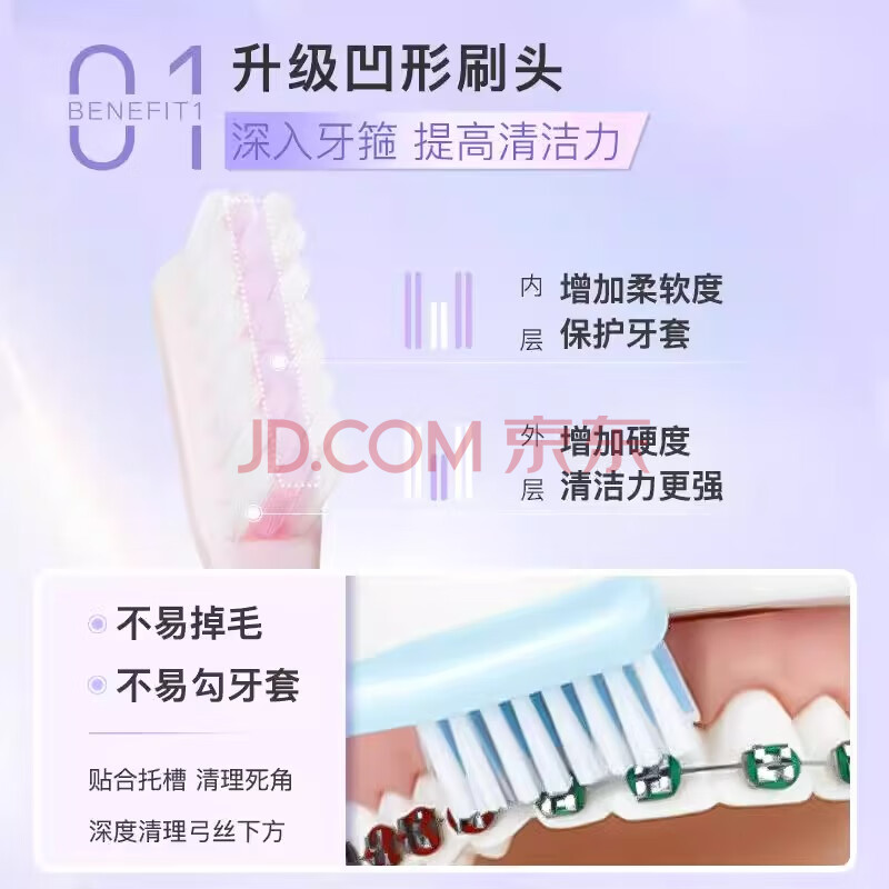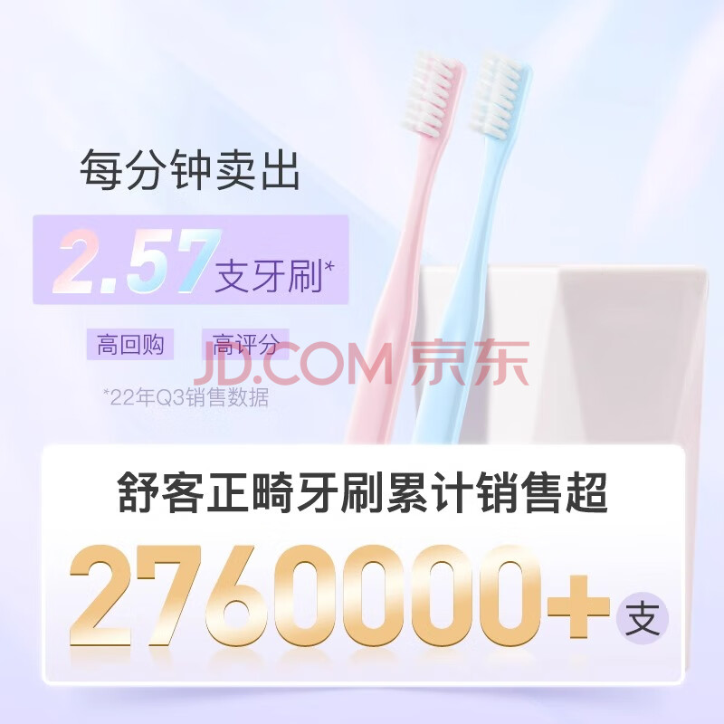 商品相册:舒客【肖战同款】正畸软毛牙刷2支青少年学生矫正戴牙套含牙缝刷粉第