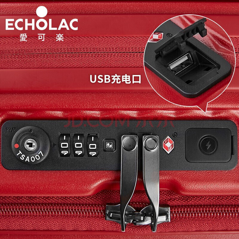 商品相册:爱可乐(Echolac)前开盖行李箱可扩展拉杆箱高品质TSA旅行箱PC183F 28英寸 黑色第