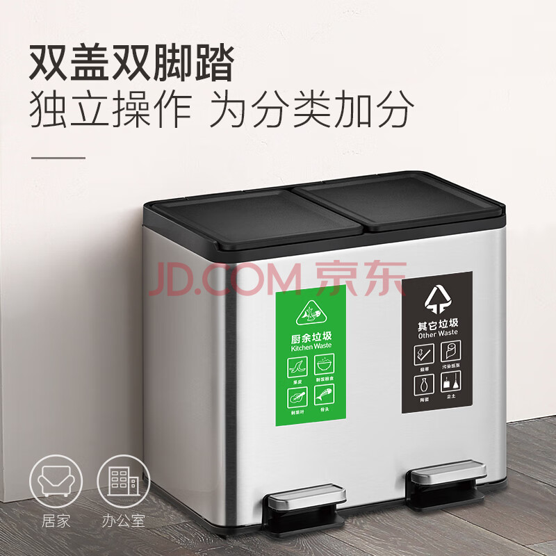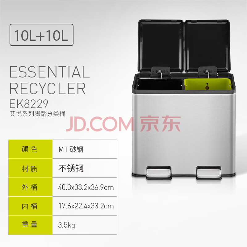 商品相册:EKO分类脚踏垃圾桶10L+10L砂钢双桶不锈钢大号带盖张若昀推荐8229第