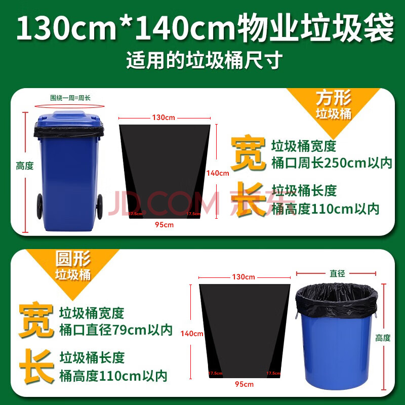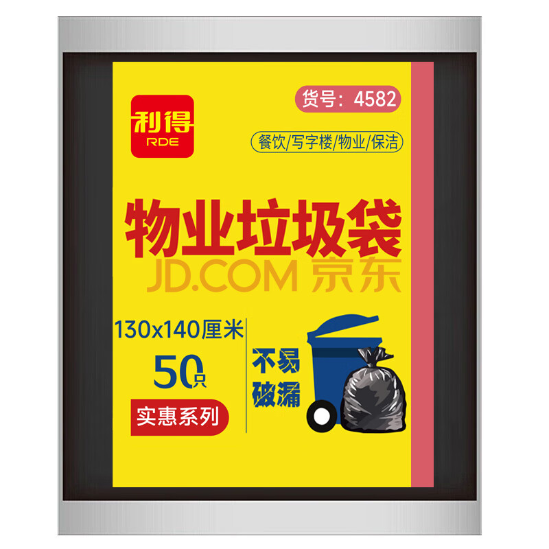 商品相册:利得平口垃圾袋黑色130*140cm50只单面1.5丝大号加厚商用办公酒店厨房第1张/共7