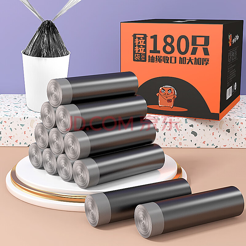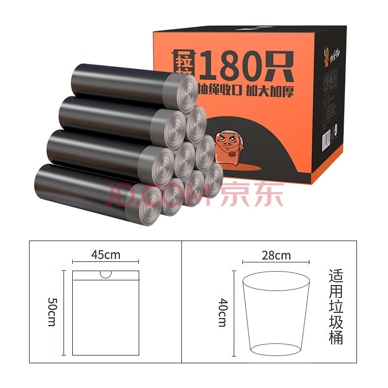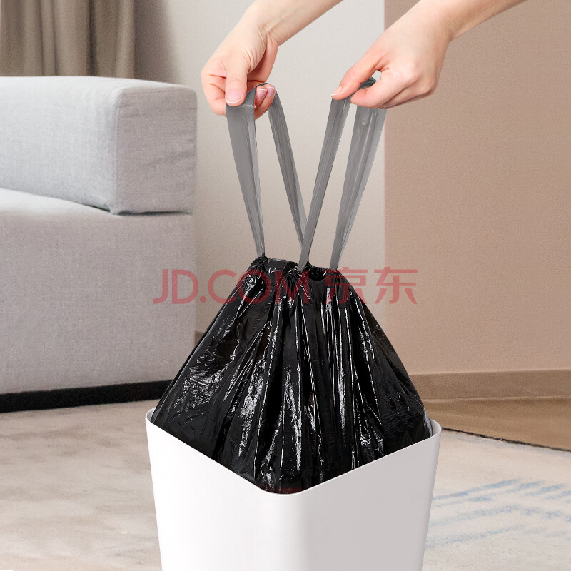 商品相册:Sodolike尚岛六块砖抽绳垃圾袋黑色45*50cm180只单面1.2丝点断式加厚收口第1张/共6