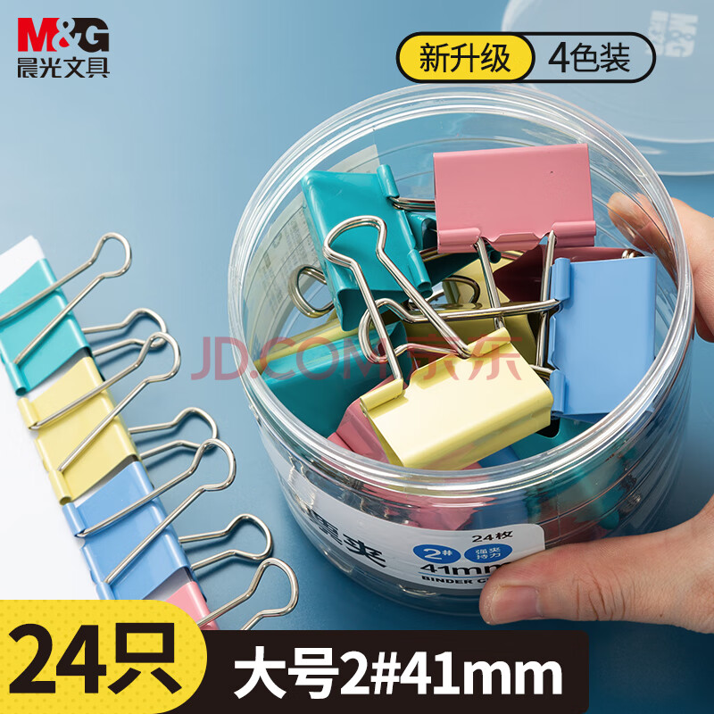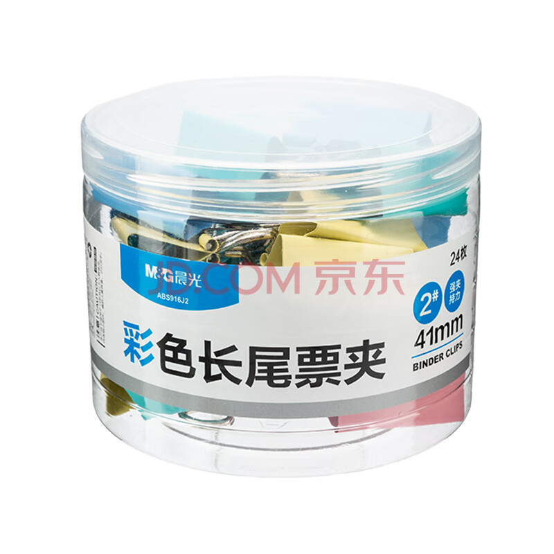 商品相册:晨光(M&G)【超级爆款】文具2#41mm 24只/罐 彩色长尾夹 大号金属票据夹 经济型办公燕尾夹 ABS916J2第