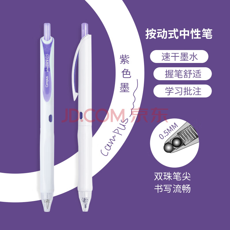 商品相册:国誉(KOKUYO) 进口按动中性笔viviDRY高考彩色速干水笔0.5mm签字笔 紫色内芯 1支 WSG-PR302V第