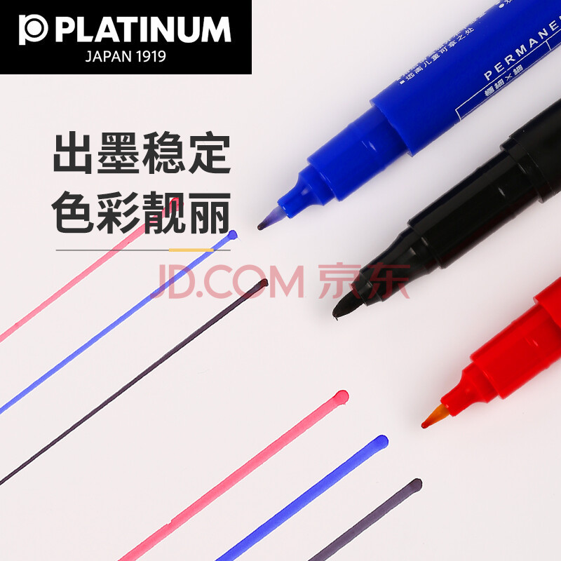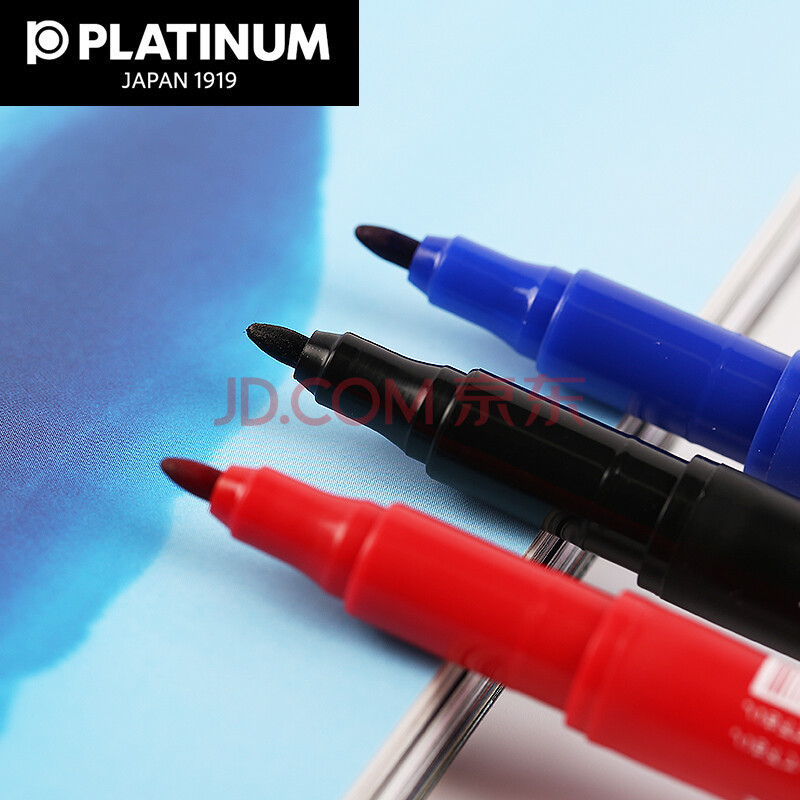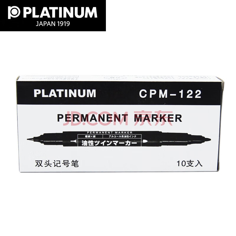 商品相册:白金(PLATINUM)钢笔CPM-122粗细双头记号笔光盘油性笔绘图勾边勾线笔 10支盒装 蓝色第