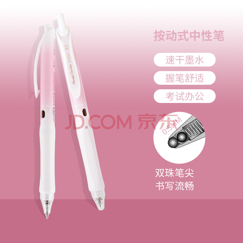 商品相册:国誉(KOKUYO) 按动中性笔淡彩曲奇高考彩色速干水笔0.5mm签字笔 黑色内芯粉色笔杆 1支 WSG-PRY302P第