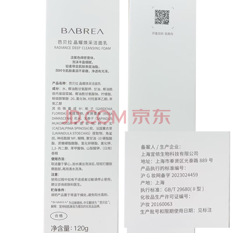 商品相册:芭贝拉(BABREA)洁面乳氨基酸洗面奶温润清爽120g 第