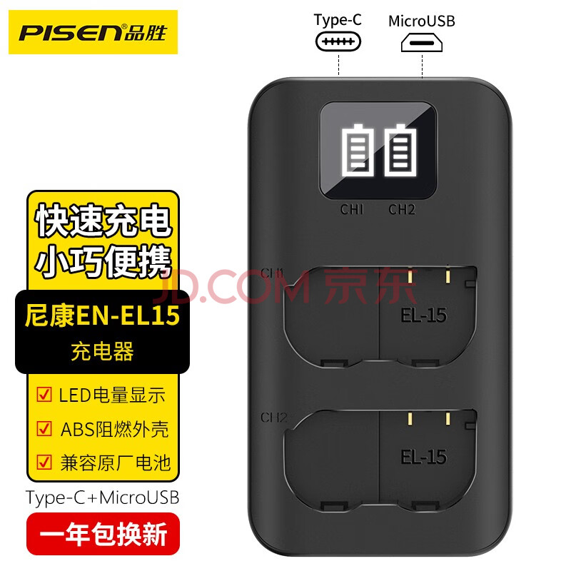 商品相册:品胜(PISEN) 适用尼康EN-EL15C电池充电器 D800 D810A D750 D850 D7200 D7000 D7100单反双充充电器第
