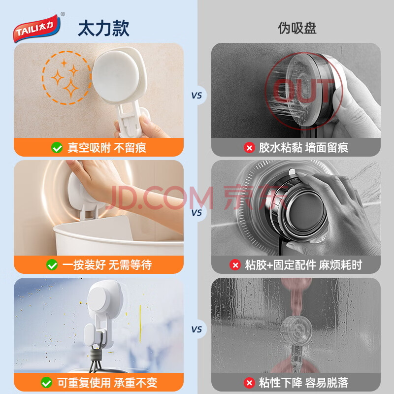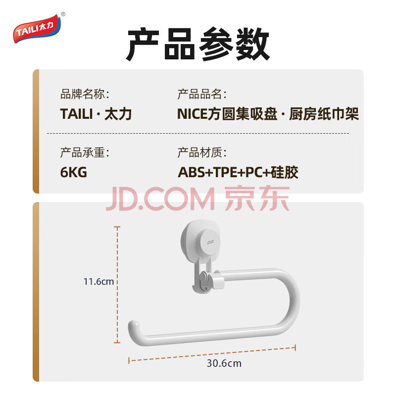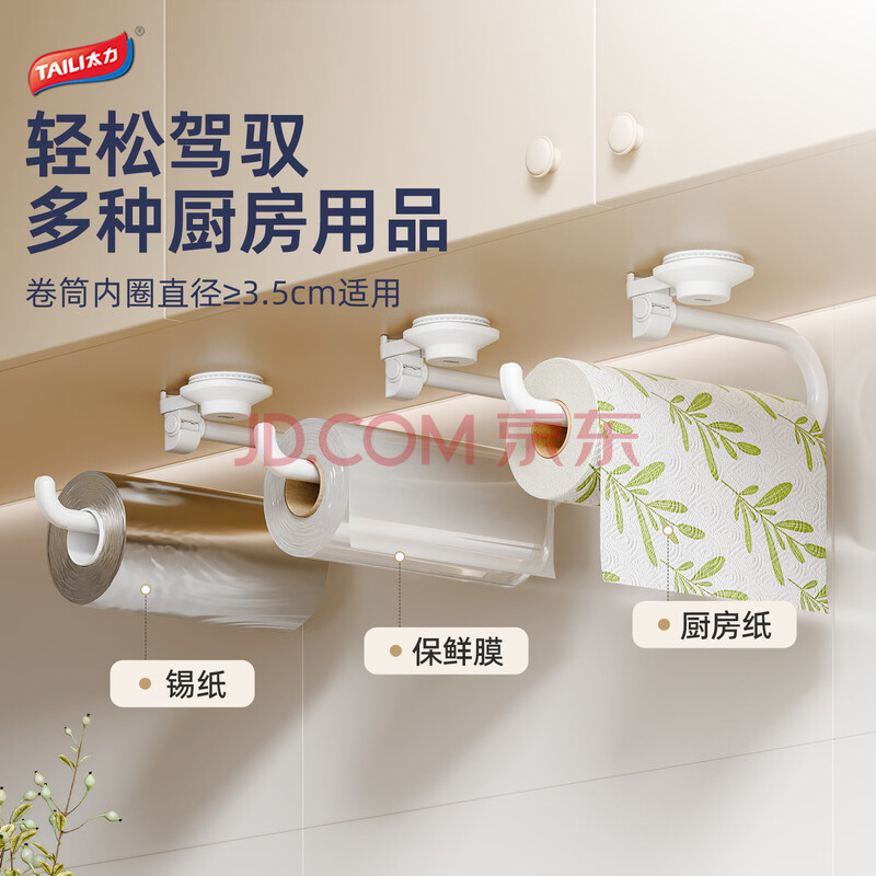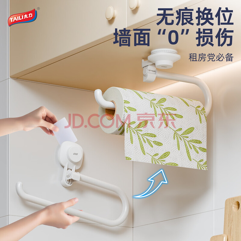 商品相册:太力吸盘纸巾架 免打孔厨房置物架壁挂卷纸架吸盘懒人厨房纸挂架挂钩第