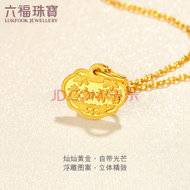 商品相册:六福珠宝黄金吊坠长命富贵吉祥如意足金挂坠周岁礼不含项链 计价 约0.96克第
