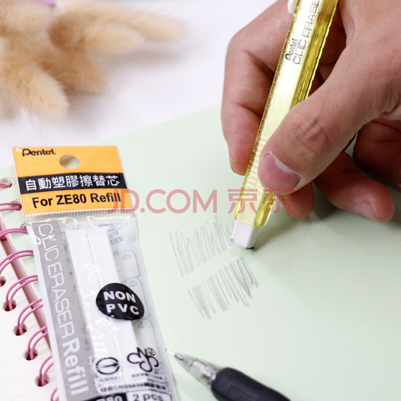 商品相册:派通(Pentel )笔形美术橡皮擦 学生白色手推式橡皮替芯2袋装 ZER80第