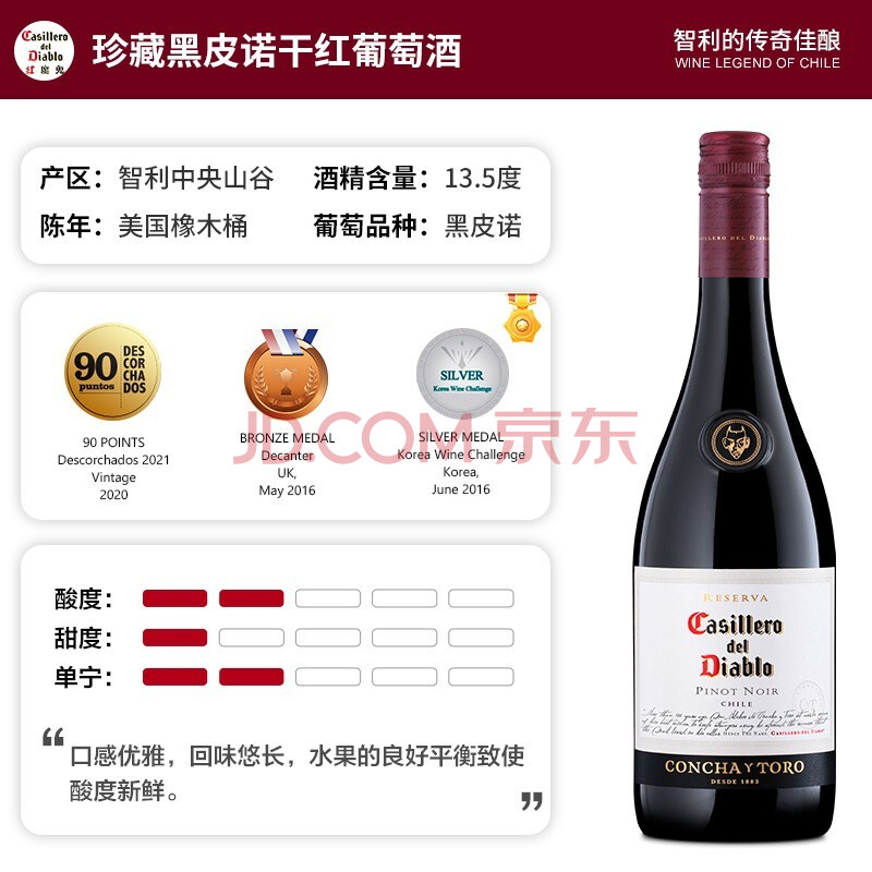 商品相册:红魔鬼(Casillero del Diablo)珍藏黑皮诺干红葡萄酒750ml*6瓶整箱 智利原瓶进口红酒第
