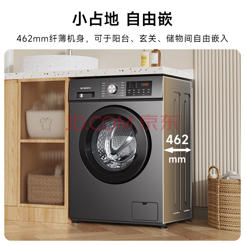 商品相册:创维变频除螨滚筒单洗8公斤洗衣机全自动 一级能效 宿舍租房家电 超薄嵌入XQG80-B15MC第