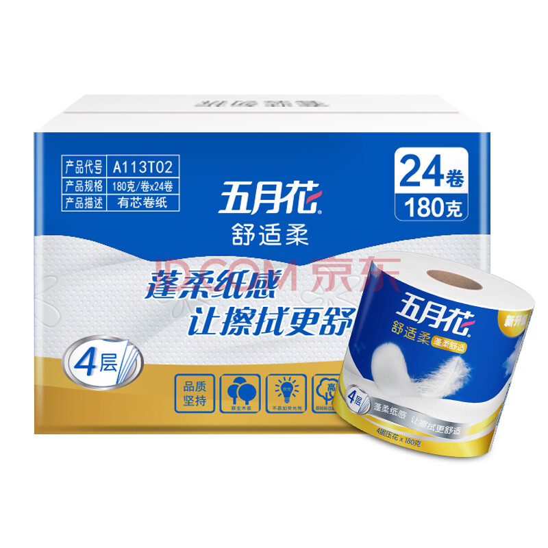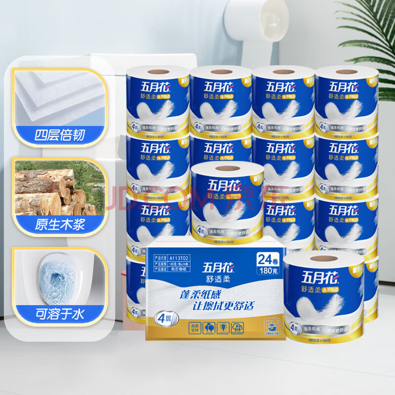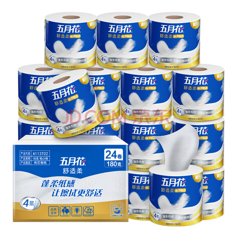 商品相册:五月花(May Flower) 有芯卷纸 4层180克*24卷 厕所卫生用纸柔软韧压花厚实 整箱装第
