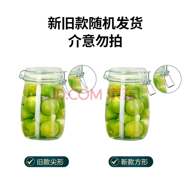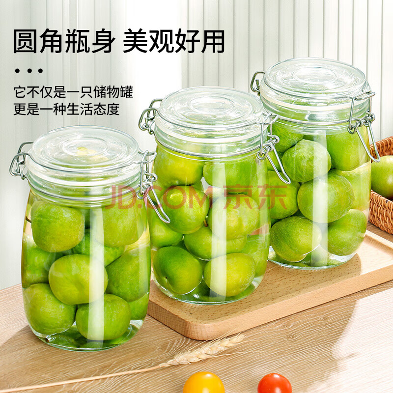 商品相册:拜杰玻璃密封罐 3个装1000ml储物罐家用玻璃瓶泡酒瓶泡菜瓶腌腊八蒜罐第