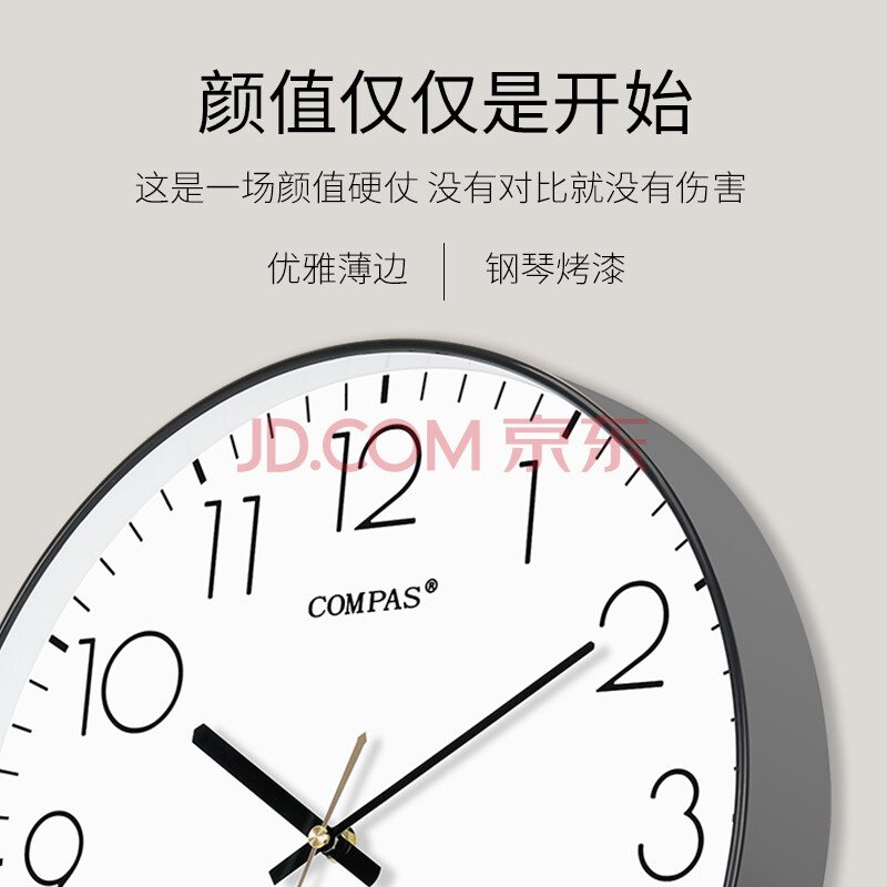商品相册:康巴丝(Compas)电波钟自动对时静音挂钟教室客厅考场钟表挂墙 C6219B钢琴黑 35cm第