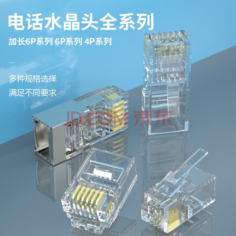 商品相册:丰应子(Fengyingzi) 4P2C电话水晶头 语音电话网络线接头镀金 100个/袋 FYZ-W313D第