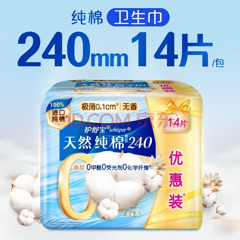 商品相册:护舒宝天然纯棉卫生巾日用240mm14片姨妈巾极薄透气京东自营官方旗舰第