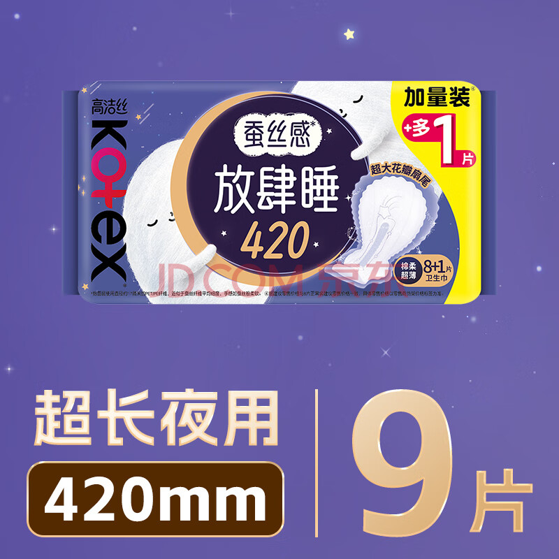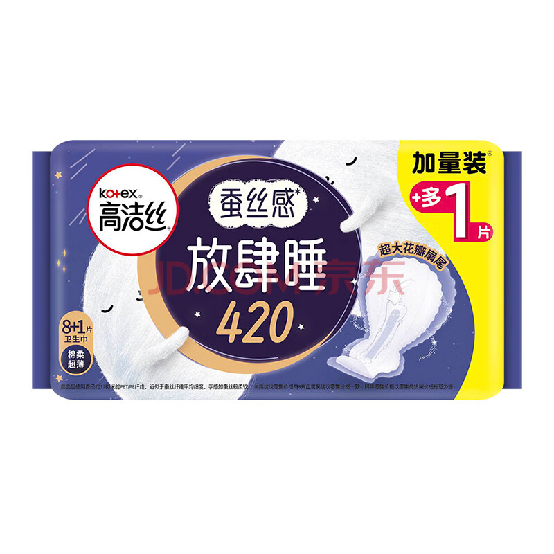 商品相册:高洁丝【长夜呵护】蚕丝感放肆睡卫生巾420mm8+1片夜用姨妈巾京东自营第