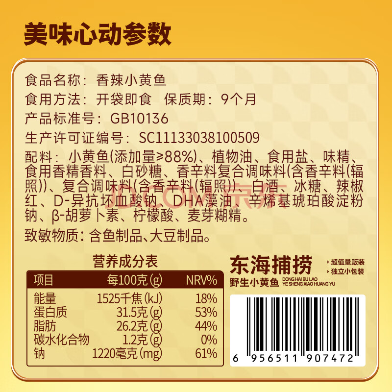 商品相册:三只松鼠香酥小黄鱼香辣味96g/袋 小鱼仔鱼干肉食海味零食即食海鲜无污染第