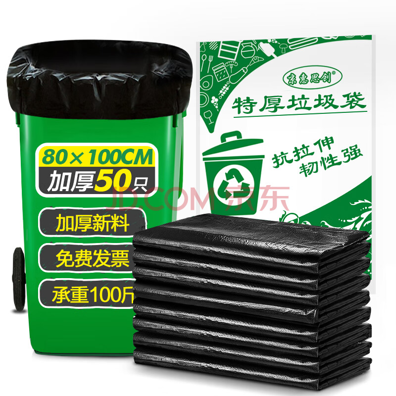 商品相册:京惠思创物业垃圾袋黑色80*100cm*50只2.5丝大号加厚商用平口酒店保洁环卫第