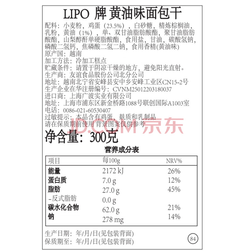 商品相册:Lipo黄油味面包干300g/袋 零食大礼包 越南进口 出游 野餐第
