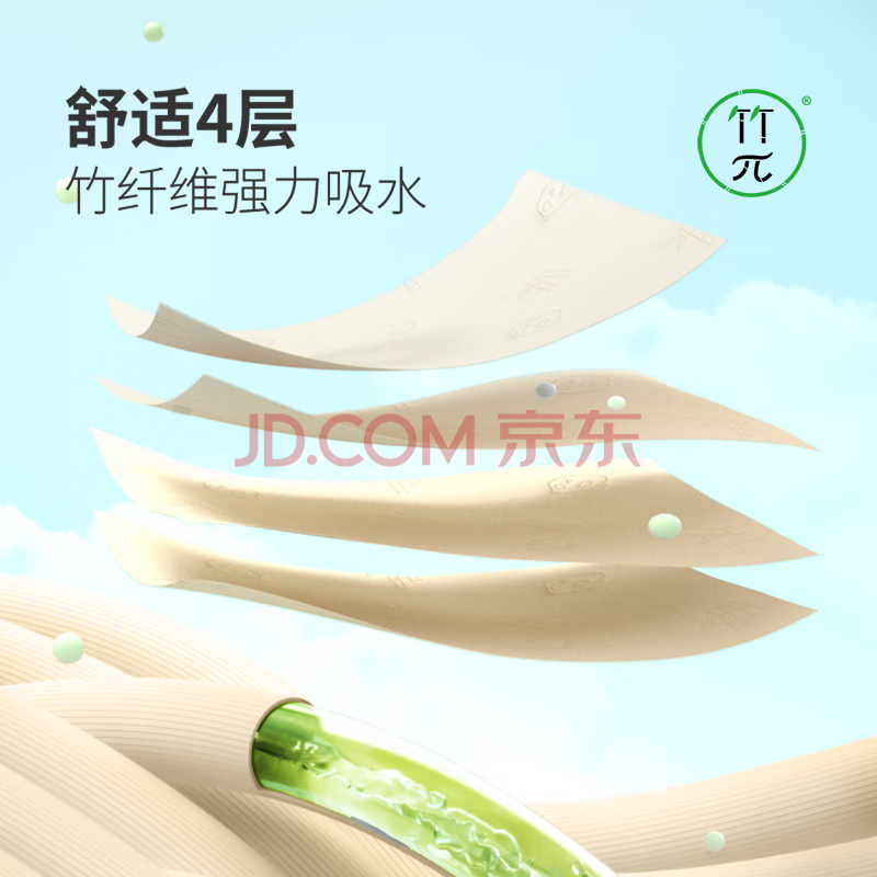 商品相册:竹π无芯卷纸 竹浆本色纸4层70克12卷*3提 层数升级无漂白纸巾第